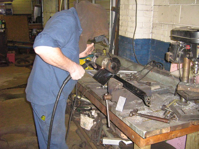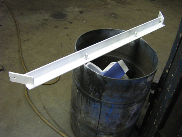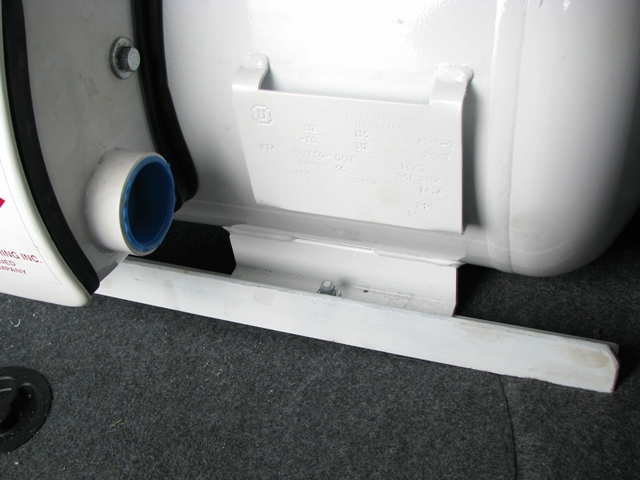 After the bar was welded, it was test fitted to ensure that the bracket didn't shift. The conversion was done so that the strut stabilizer bar could easily be removed by any mechanic without having to disconnect any propane equipment. This eliminates the need to have licensed propane mechanic perform routine maintenance. |