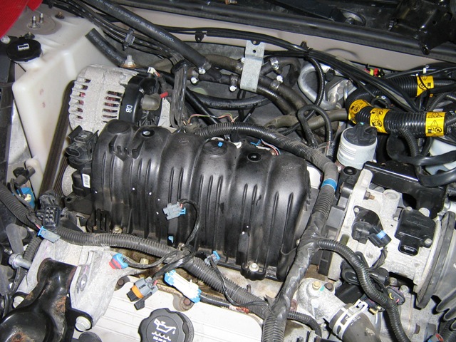 The first step of the conversion is determining where the hardware will be located. In a model-specific conversion, all the brackets and detailed instructions are included in the kit. The ECU also comes pre-programmed so that it runs properly out of the box. As this was a prototype, we spent a great deal of time to figure out the best location for the various components. (Where's the converter in this photo?) There were some hardware layout changes compared to the 2004 Impala. Notice the Y-shaped injector bracket. Although simple in appearance, there was some significant engineering time involved to ensure proper fit. |