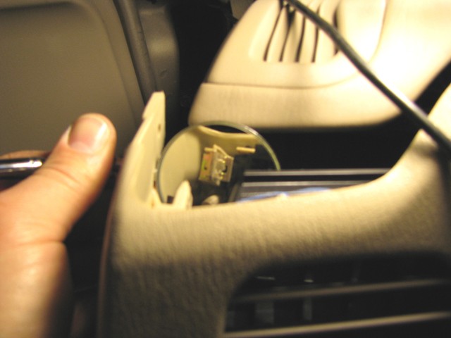 ![]() A mirror shows the mounting clip that is located exactly where we want to drill the hole. |