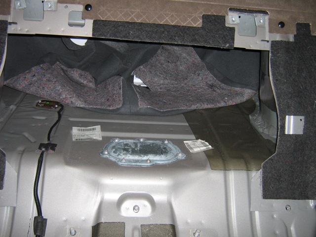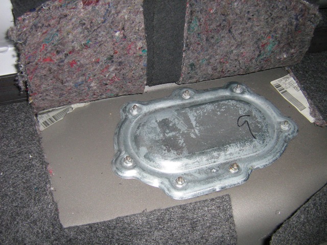 A good installer thinks of the future maintenance needs of his customer. A poorly positioned fuel tank on this vehicle could cost the vehicle owner hundreds of dollars and several days of downtime if he installs the tank over the fuel pump. The panel in the floor provides access to the fuel pump. The fuel tank is located right behind the rear seat so extreme care must be taken with mounting the propane tank. |